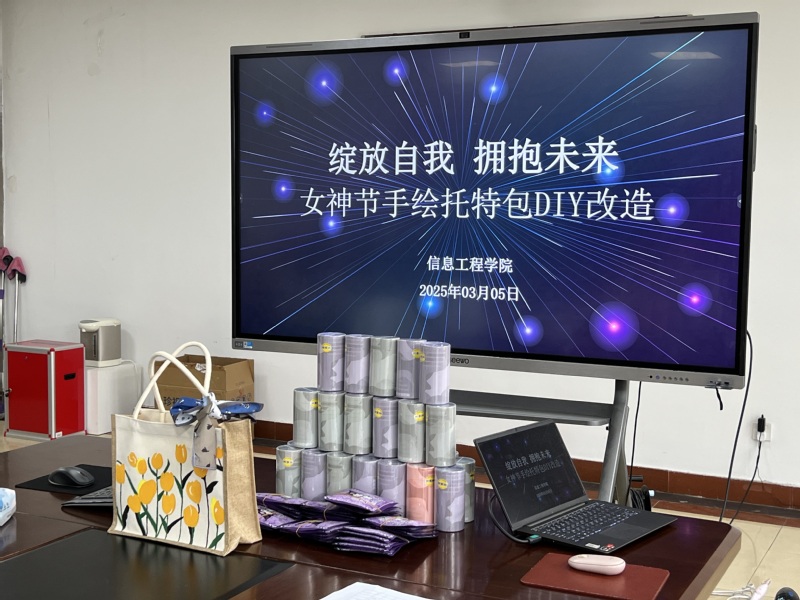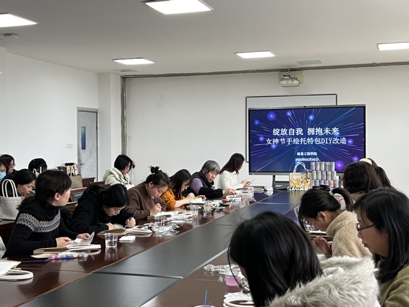 在第115个国际妇女节到来之际,为体现广大女性对美好生活的追求、展现新时代女性的风采,同时丰富信息工程学院女教工们的精神文化生活,3月5日,信息工程学院分工会在善成楼318室开展了以“绽放自我 拥抱未来”为主题的手绘托特包DIY改造及抽盲盒活动。