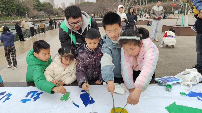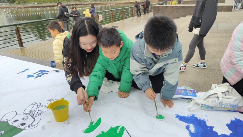 在武进新天地公园,志愿者开展了“环保有我,共画地球”创意环保涂鸦活动。同学们拿起画笔,用绚丽的色彩描绘出美丽自然景观、濒危野生动物以及被污染的地球等。路过的市民纷纷被吸引,一些小朋友也在志愿者的指导下,拿起画笔参与涂鸦,在心中种下绿色环保的种子。