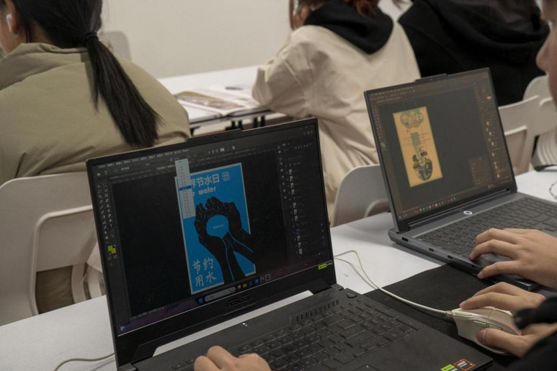 学生代表张群向同学们强调了水资源保护的重要性,并指出每个人在节水行动中不可或缺的作用。他还为大家普及了节水知识和小窍门,鼓励同学们从日常生活做起,践行节水理念。同学们围绕节水主题展开创意设计,利用废旧物品和自然材料进行重新组合与创作。活动中,大家脑洞大开,设计形式丰富多样,涵盖AI设计、海报绘制及手抄报创作等。在AI设计作品中,同学们运用科技手段,构思出未来节水的创新场景,展现了科技与环保的深度融合;海报和手抄报绘制中,大家用缤纷的色彩和独特的构图传递节水理念,每一笔都饱含对水资源保护的关切与思考。这些作品不仅体现了学生们的创意才华,更将节水意识融入艺术表达,让环保理念深入人心。