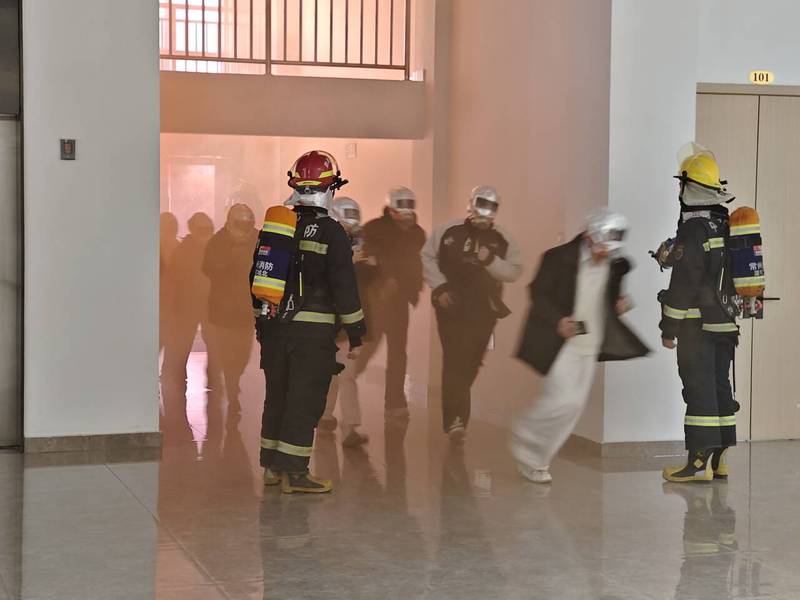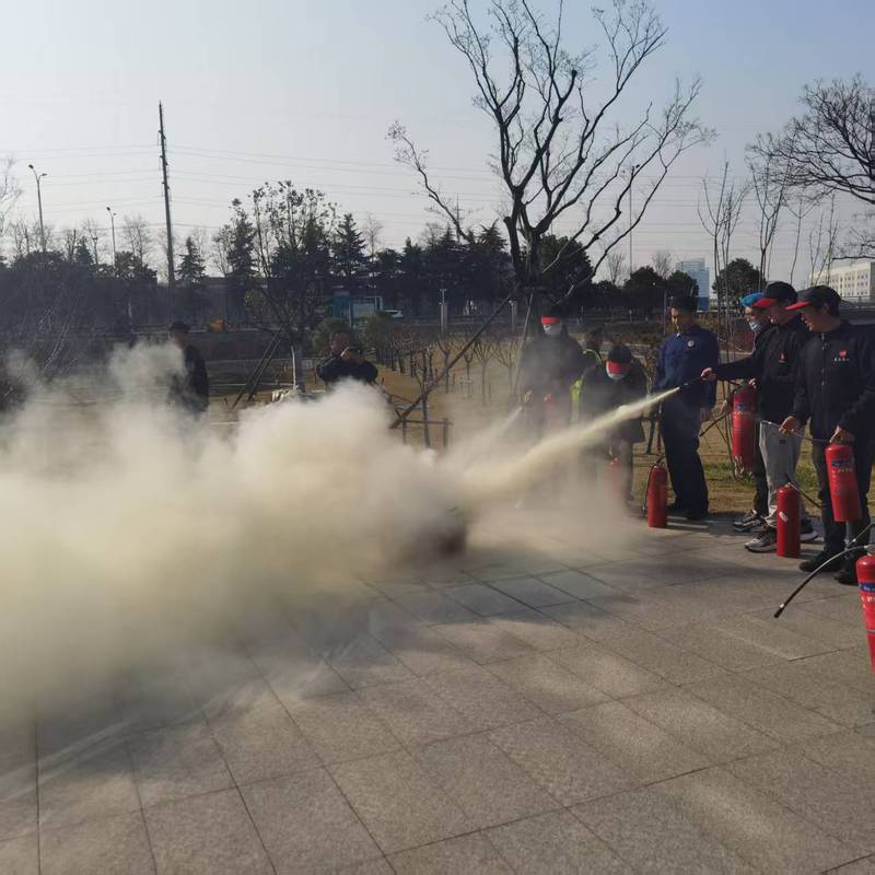 为使演练更加形象、逼真,达到应有的效果,学校提前准备了消防演习烟雾弹、灭火器、应急灯、警戒线、对讲机、警示标识等演习用品。在应急逃生模拟演练环节,同学们在教室上课期间,突然火灾警报声响起,教室外起火冒烟,同学们在老师和保卫处工作人员的组织下,有序从安全出口逃生,到达安全区域后并由保卫处清点学生人数。消防逃生演练结束后,为进一步巩固实践效果,消防官兵们在思行楼门外讲解灭火器的使用方法,演示操作步骤(1提2拔3瞄 4按)。随着模拟火源的点着,消防官兵组织学生提着灭火器分批对火源进行灭火。整个消防灭火演练过程井然有序,有条不紊。