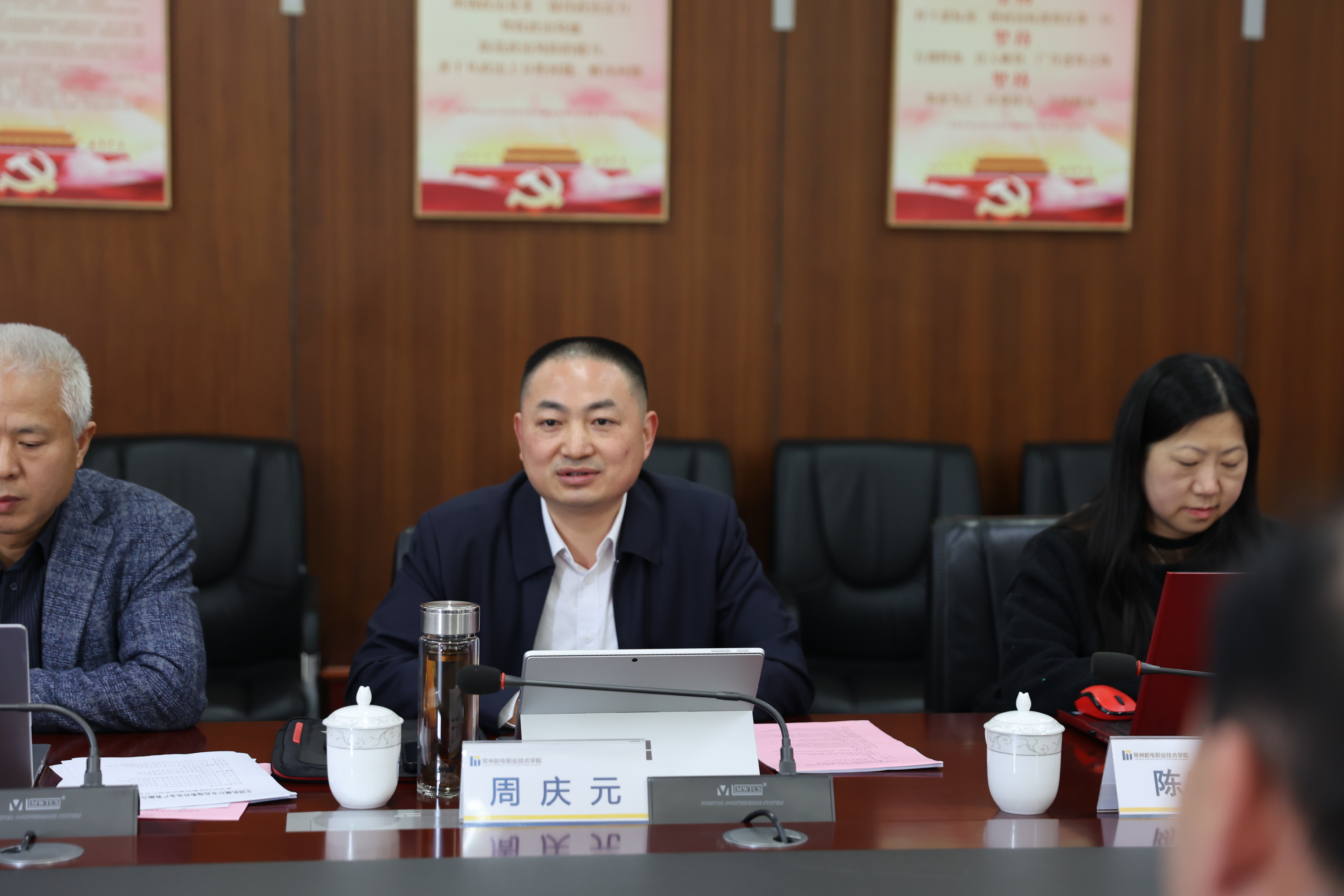 周庆元致欢迎辞,介绍了学校聚焦“双高建设”深化产教融合的三大任务,强调教材建设对技术技能人才培养的核心作用。朱国锋系统解读共同体目标,提出“岗课赛证融通、校企协同开发”的教材编写原则,并明确主编遴选标准及培训计划。于洋以企业典型案例展现“技术工艺进教材”的实践路径,宋海潮从岗位能力分析角度,分享模块化教材开发经验。刘江提出以“分阶段、重特色、强应用”思路推进教材建设,服务职业本科与高职专科分类发展需求。