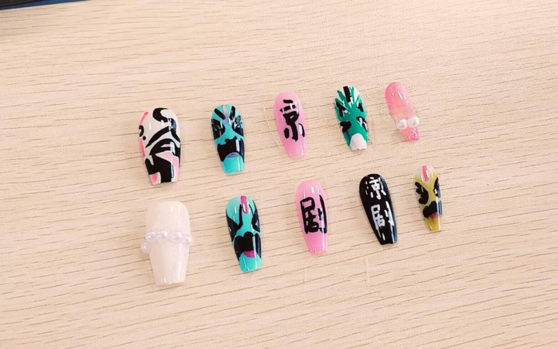 活动现场,学生代表仲露担任主持与美甲教学。在指导下,大家凭借对京剧元素的理解,用颜料精心装饰,搭配亮片、水钻等,展现京剧角色独特韵味;在“青花瓷遇上京剧”区域,同学们大胆融合青花瓷素雅与京剧华丽,有的将青花瓷纹理与京剧脸谱结合,有的把青花图案融入人物背景,作品独具匠心;围绕京剧脸谱创作,同学们依据角色性格,巧用色彩与线条展现脸谱神韵,鲜明色彩碰撞、流畅线条勾勒,让每个脸谱栩栩如生。
