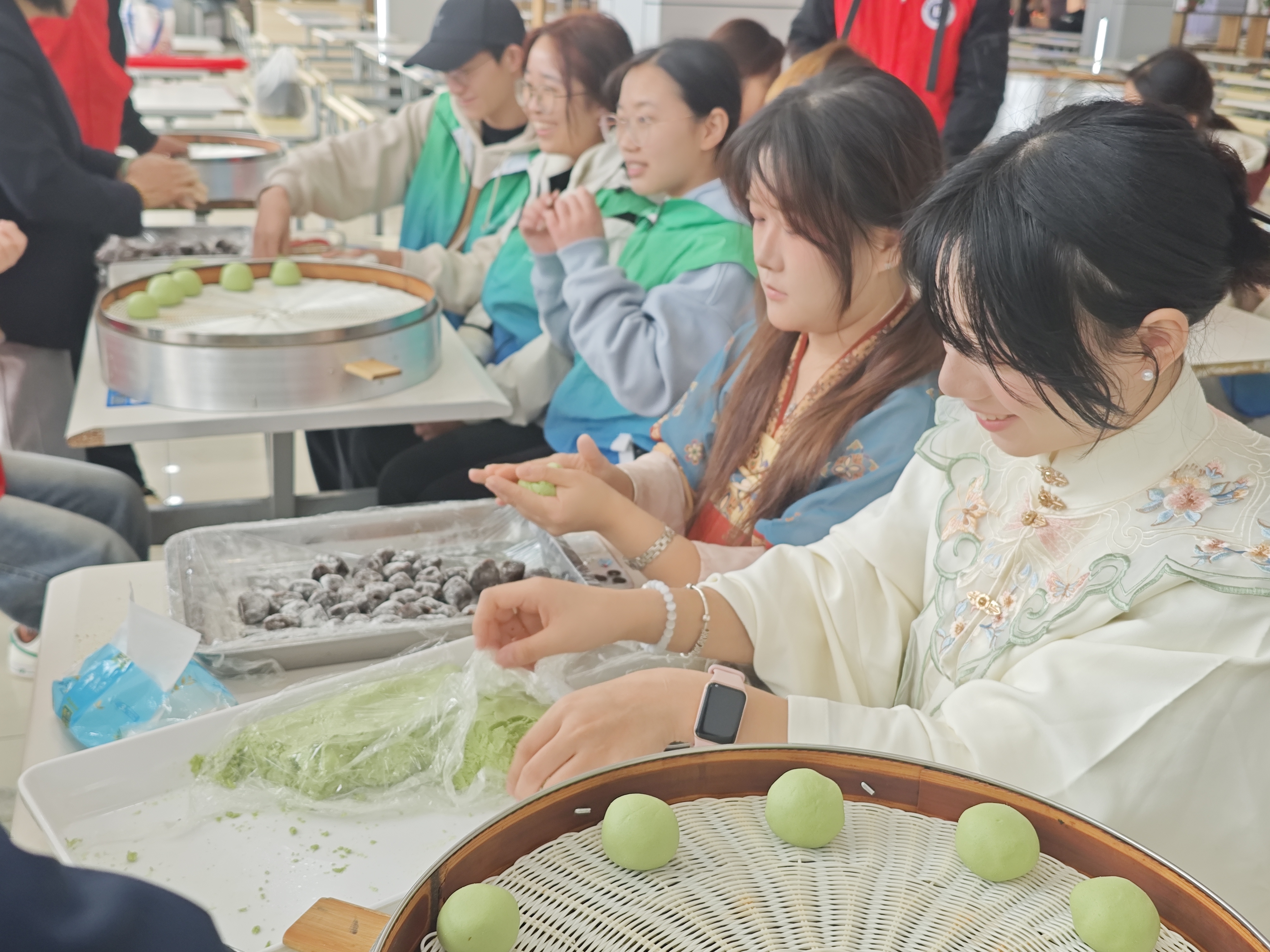 3月29日,交通工程学院联合经济管理学院在五谷楼举办“手作青团寄情思,寻味清明忆古韵”活动。党总支副书记沈俊、辅导员胡梓航以及多位公寓阿姨参与活动。同学们在周阿姨等多位阿姨的指导下,将新鲜艾草与糯米粉揉合,制作出翠绿的青团。大家还将青团分享给其他师生,传递传统文化魅力。活动不仅让同学们体验了传统习俗,更在劳动实践中增强了动手能力,培养了团队协作精神,深刻体会到劳动的意义与价值,厚植文化自信与家国情怀。