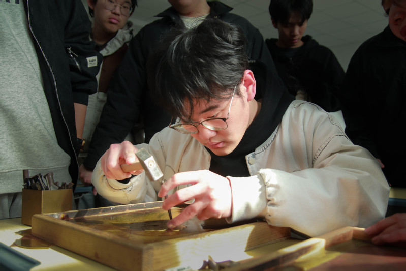 “此次铜艺课活动让我近距离感受了传统工艺的魅力,体验到中华技艺的博大精深,也激发了我们探索传承‘匠心’的信念与信心。”数设2431季黄源同学说。