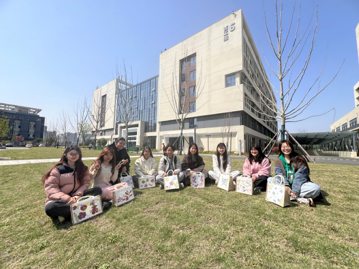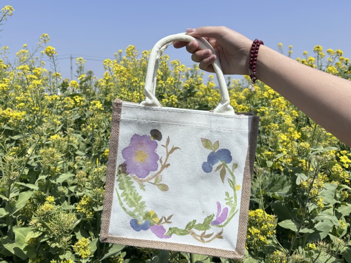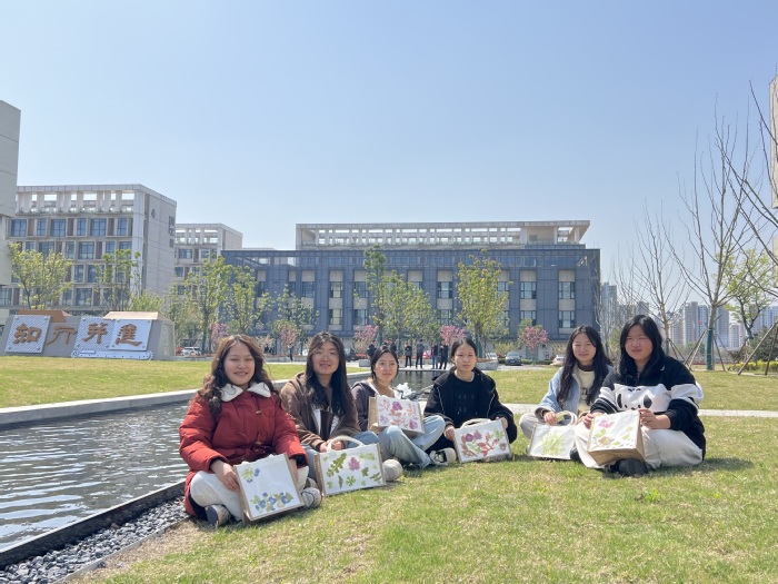 在三小时的创作过程中,非遗体验活动也是一次艺术疗愈实践。很多参与的学生都拿着自己创作的独一无二的作品相互摆拍,交流心得。这些凝结着春日生机的帆布包,既是非遗技艺的传承载体,也成为当代青年自我疗愈的温柔介质。