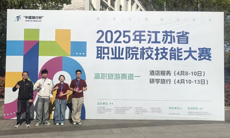 4月11日至13日,由江苏省教育厅、江苏省人力资源和社会保障厅等部门联合主办的2025年江苏省职业院校技能大赛高职旅游类研学旅行(参赛学生:高毅、尤婧茹、王自立,指导教师:李跃进、史蒂雯)、导游服务(参赛学生:陶志彤、朱春猛、黄译慧,指导教师:李琰芬、岳燕芬)两个赛项分别在南京旅游职业学院和江苏旅游职业学院举办。经过激烈角逐,两个赛项首次参赛的团队凭借扎实的专业技能和出色的现场表现,均斩获三等奖,充分展现了学院在旅游职业教育领域开设新专业的实力。