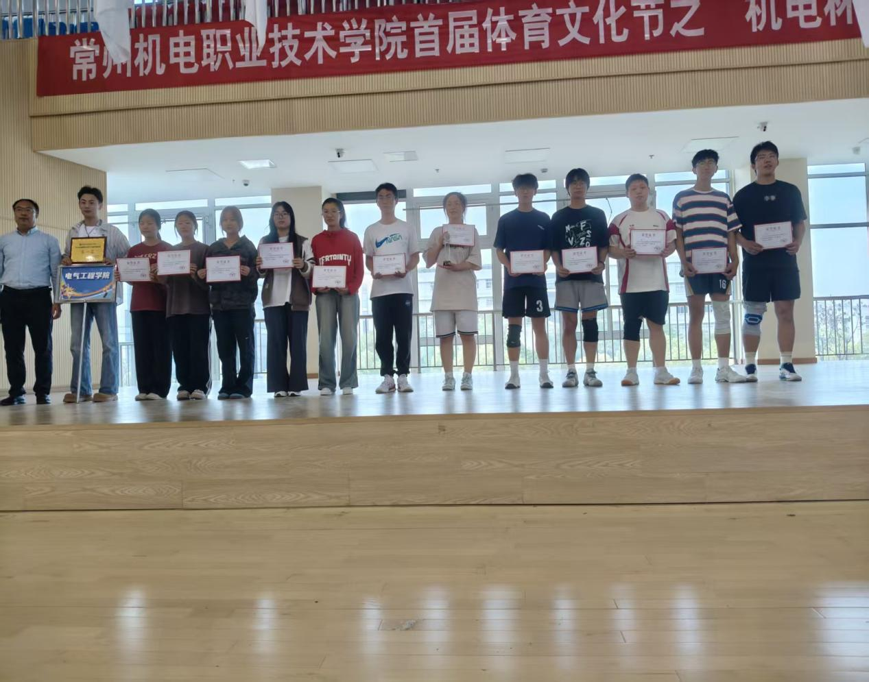 4月16日下午,我校2025年首届体育文化节之“机电杯”排球比赛闭幕式在体育馆二楼主馆举行。