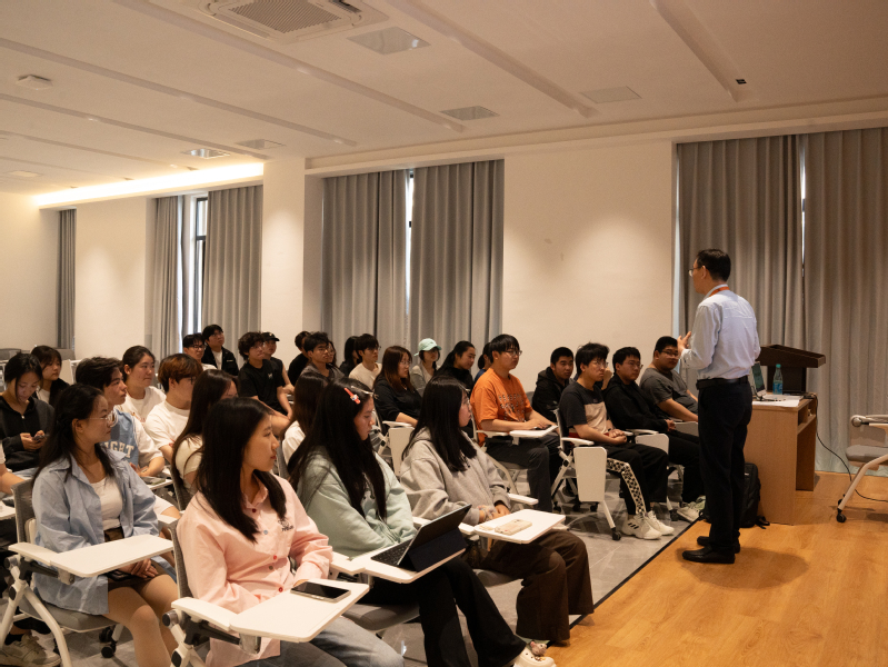 4月18日,经济管理学院党总支书记陈建新、党总支副书记甘迎春在溧阳基地“一站式”学生社区知行讲堂,与2023级、2024级30余名学生共话就业与职业发展。本次交流聚焦学生职业规划、就业形势、技能提升等核心议题,以师生零距离对话形式,回应学生关切,赋能成长需求。