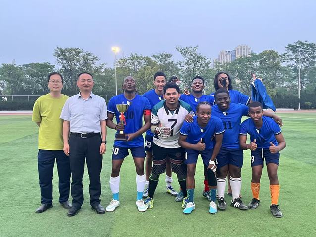 赛后,我校副校长周庆元为冠军队伍颁发奖杯。队长康德表示:“连续两年夺冠是对团队的最佳褒奖,感谢全体支持者。”来自孟加拉国的门将王海说道:“在中国收获的队友情谊、师长教导和观众支持,远比奖杯更加珍贵。”