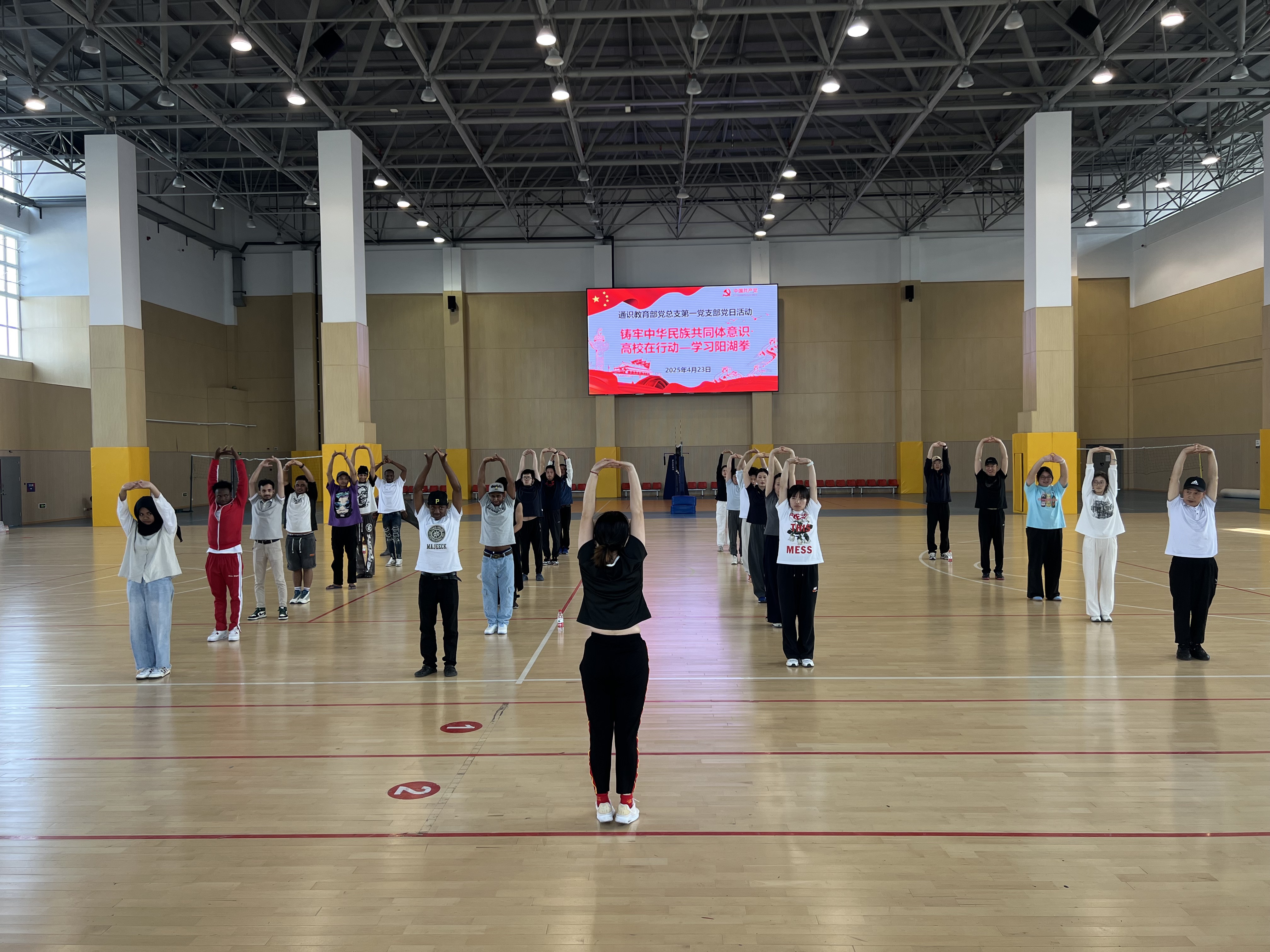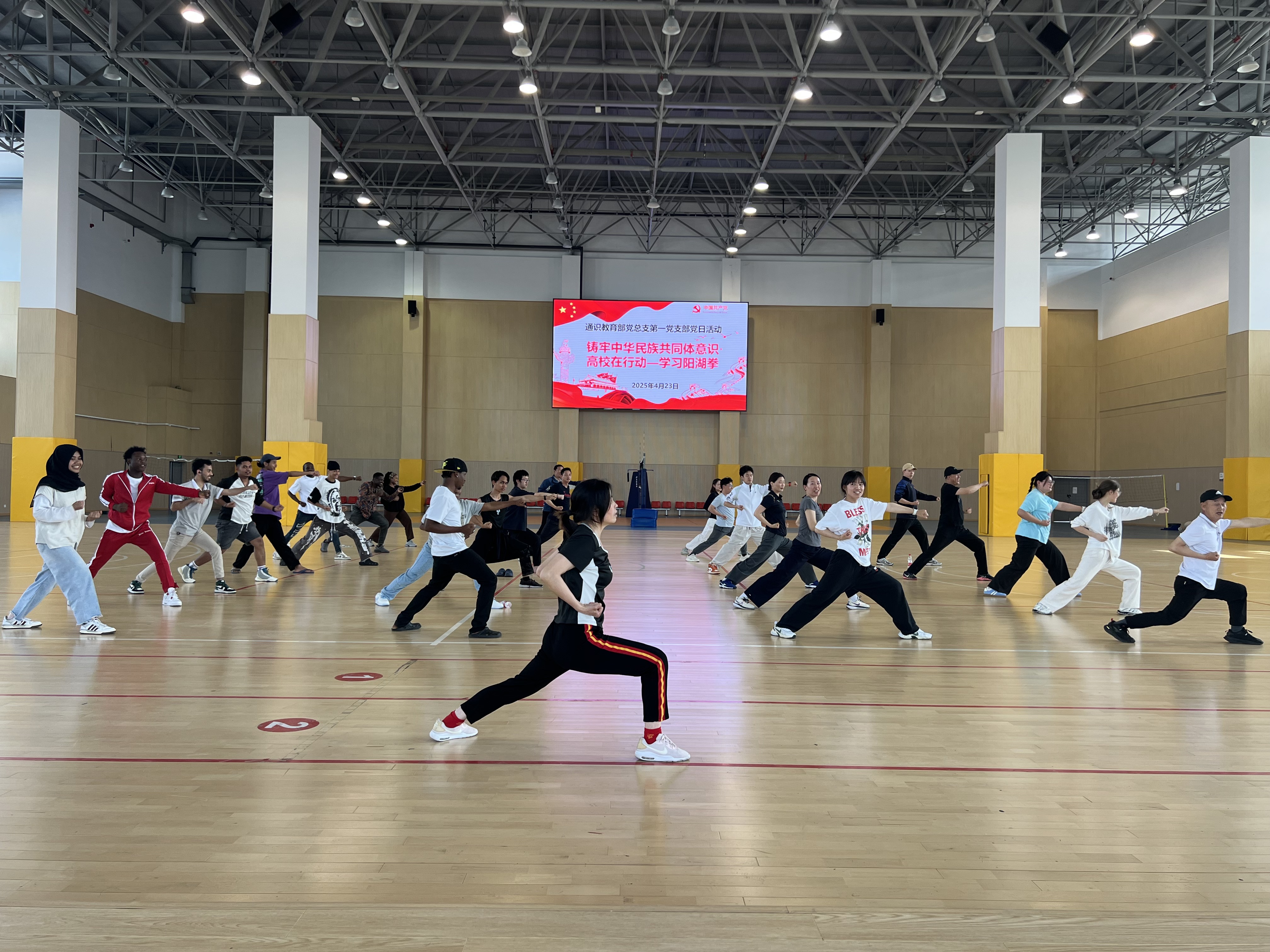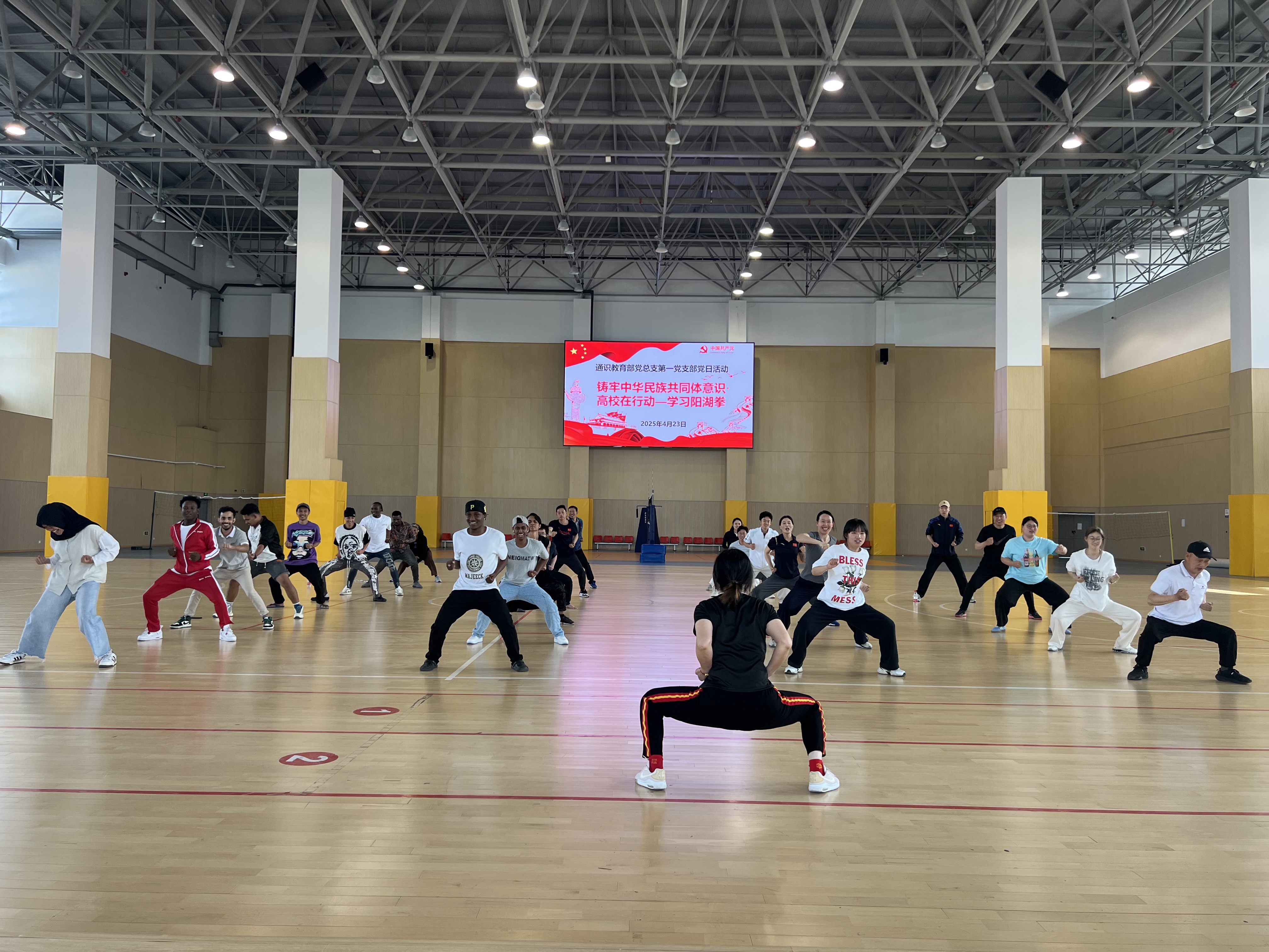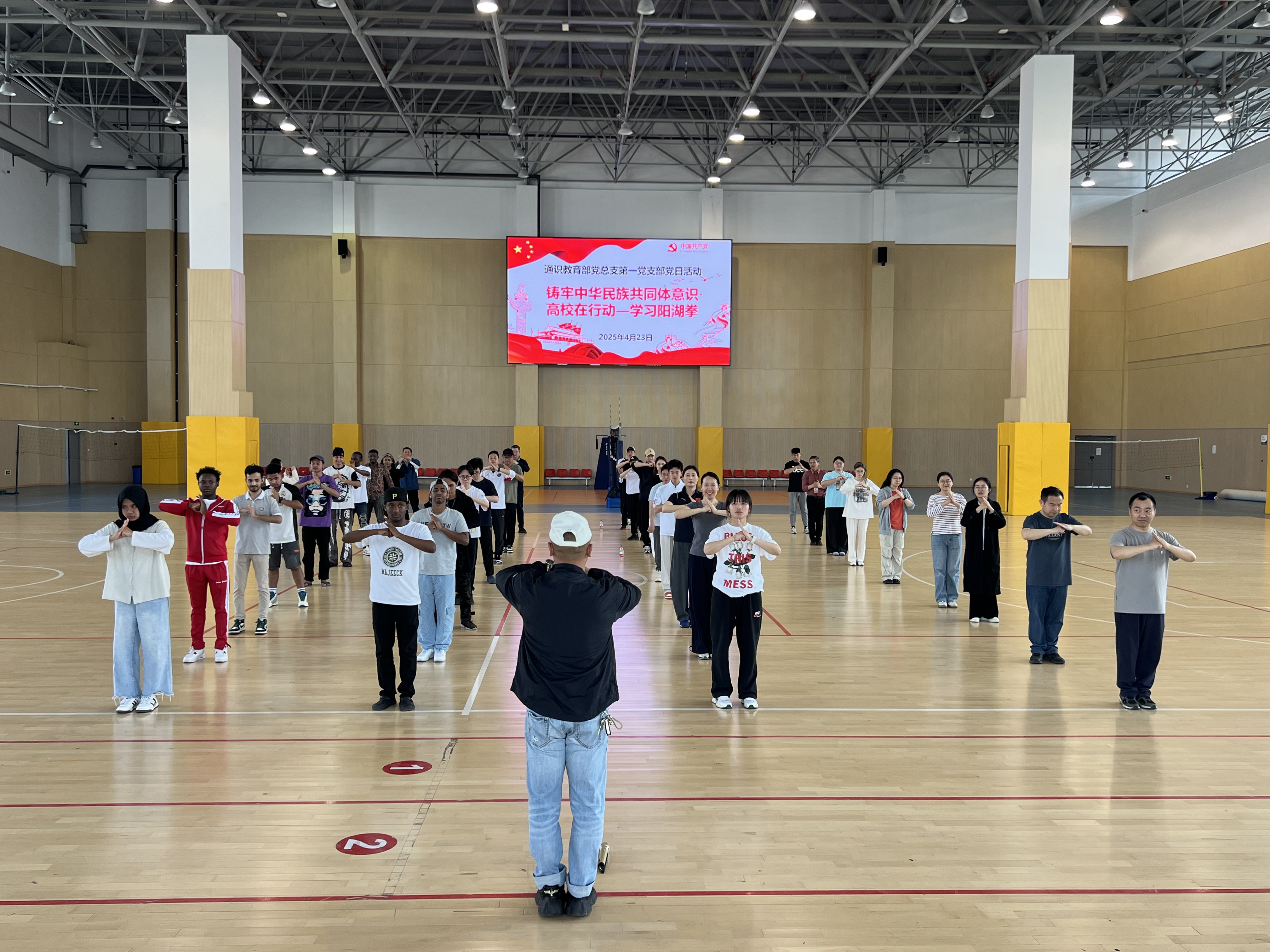 4月23日下午,通识教育部党总支第一党支部开展“非遗武术进校园,民族团结共传承”主题党日活动。本次活动在体育馆二楼篮球场举行,特邀江苏省非物质文化遗产“阳湖拳”传承人刘雪美老师授课,活动面向全体体育教师、马克思主义学院教师及学生代表展开教学,旨在以传统武术为媒介,搭建文化交流平台,增强各族师生对中华传统文化的认同与热爱。
