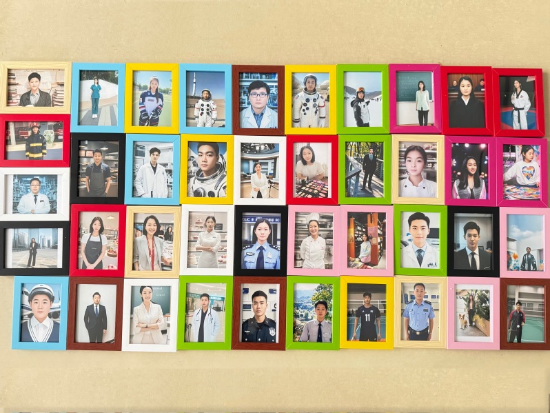 活动伊始,受资助大学生们以诗句问答形式进行破冰,在“书山有路勤为径”“读书不觉已春深”的经典诗句中感受读书的精神内涵。在“预见未来”环节中,活动运用AI图像生成技术,呈现出一张张承载着无限可能的职业照片,小朋友们惊喜地看到了身着警服、消防制服、白大褂、教师装等职业装的“未来自己”。