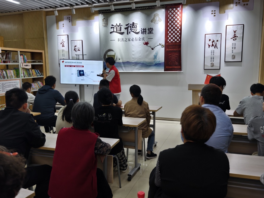 活动现场,溧阳消防中队消防专家选取电器过载、楼道堆物等五大社区高频隐患,通过视频回放真实火场案例,详细解析初期扑救与逃生路线规划要点。在AED急救培训环节,志愿者们采用设备拆解+实景模拟方式强化认知,着重培训黄金四分钟急救全流程,确保参训者掌握精准报清社区门牌、快速定位AED设备、规范实施电击除颤三项核心技能。志愿者组成护航小分队,在楼道、广场等6处场景开展应急演练,累计完成120人次急救操作实训。活动实践环节,团队完成居民楼消防给水系统检测,清理大量楼道堆积物,现场提醒整改商铺私拉电线等隐患。