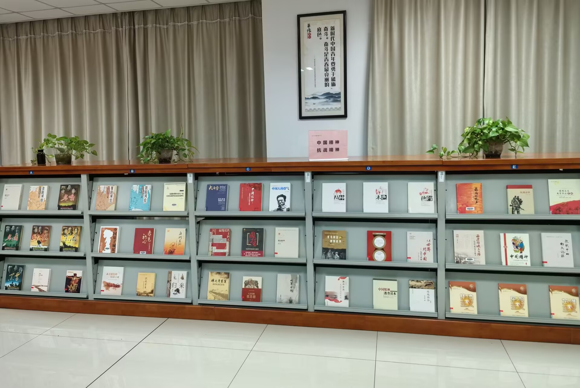 5月16日,“中国精神”“抗战精神”主题图书展在图书馆三楼阅览室布展。