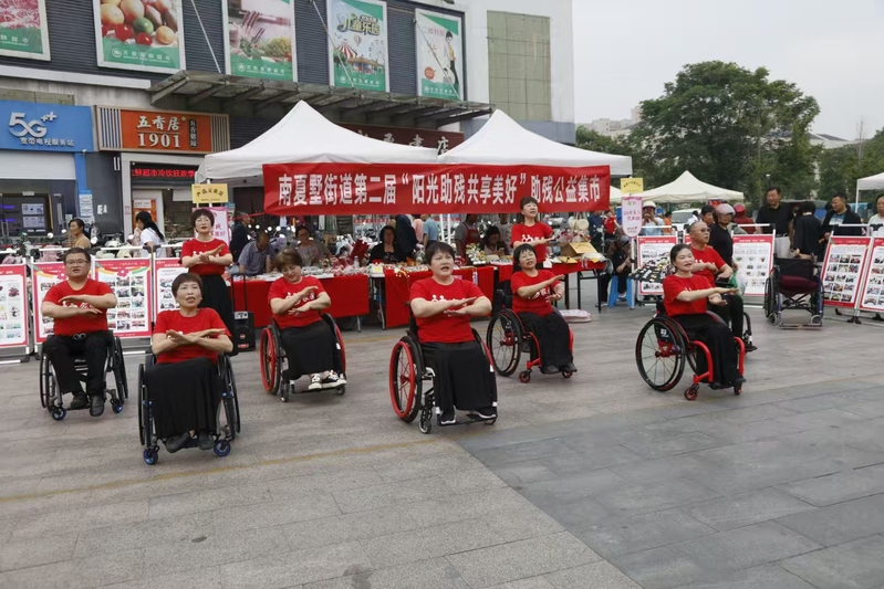 当日,志愿者与武进心家园在校外广场联合设立公益集市。残障人士才艺表演环节,他们用歌声、舞蹈和手工艺展示,向公众传递着对生活的热爱与追求。这些表演不仅展现了残障人士的多才多艺,更让在场的每一个人感受到了他们面对困难时的坚韧与乐观。同时,集市上还展售了残障人士制作的手工艺品,从精巧的竹编果篮到色彩明快的扎染布艺,每一件作品都承载着创作者对生活的热爱和对未来的憧憬。
