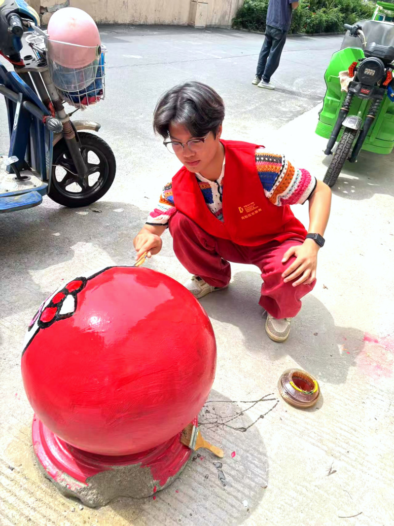 5月19日,创意设计学院30名学子在辅导员吕姿璇的带领下,走进名仕佳园社区开启了一场特别的“心灵美育”实践。作为发展型资助项目“心灵处方——中国传统艺术疗愈”系列活动之一,此次石墩彩绘活动以“一礅一景一处方”为理念,将传统笔墨化作疗愈心灵的良方,为社区量身定制了一份“心灵美育单”。