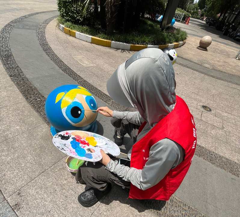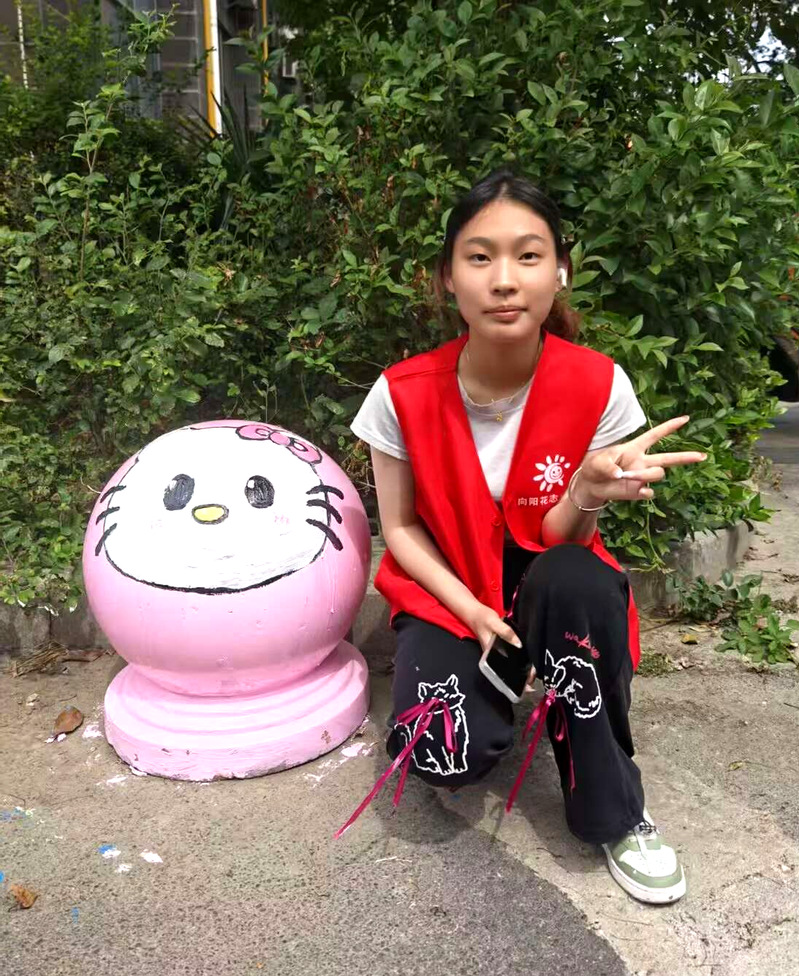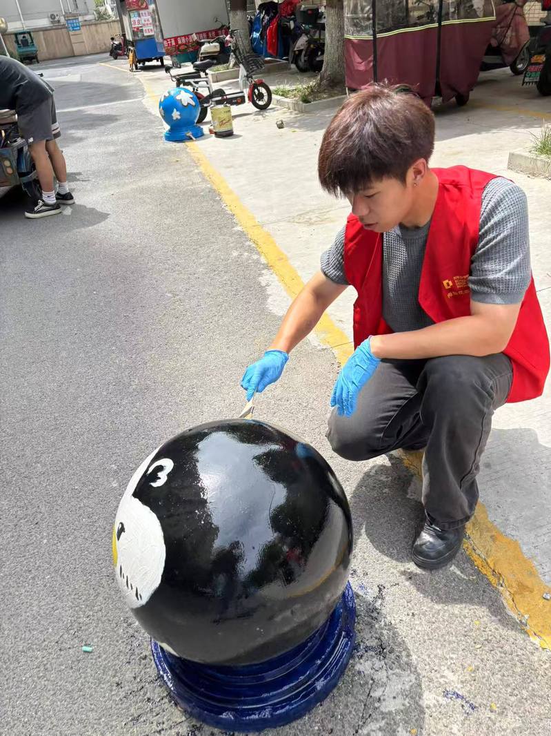 活动现场,在工作人员引导下,学子们以三人小组承包“责任墩”,依据前期设计方案,结合社区儿童较多的特点,选择绘制卡通动物、动画角色等图案。