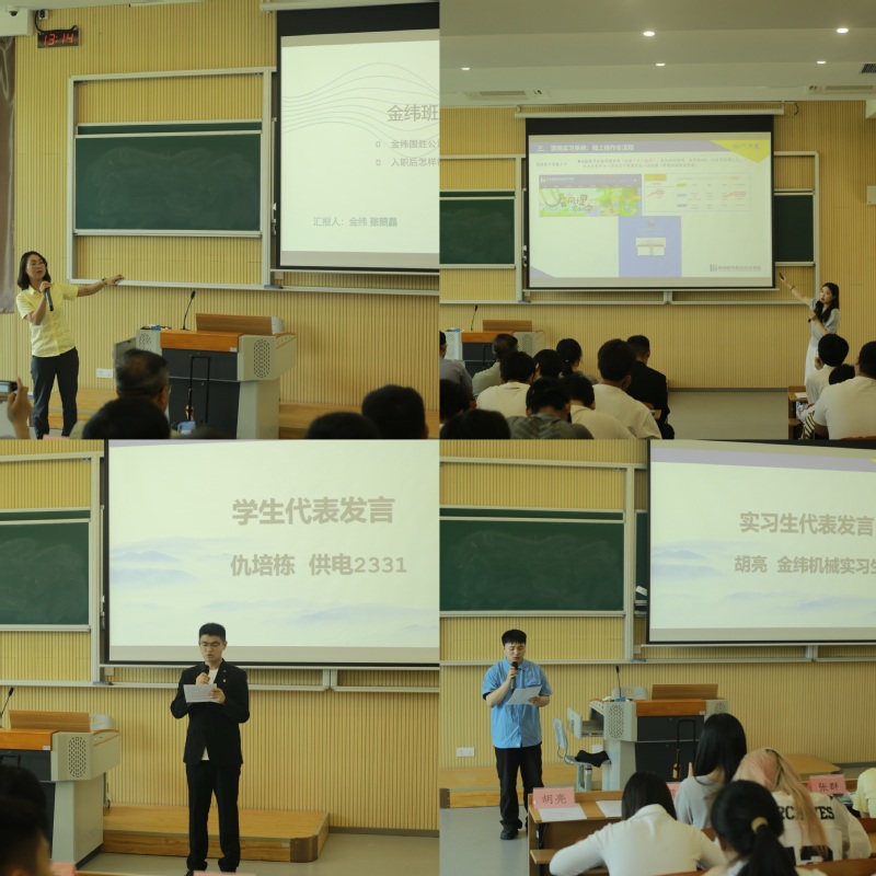 学院顶岗实习管理老师王朦朦从顶岗实习管理要求、安全注意事项、实习系统操作流程三方面解读实习管理规范。2026届学生代表供电2331班仇培栋坚定表态,将以饱满热情投身实习,在实践中锤炼本领。金纬机械溧阳有限公司人事部部长张群展示了企业智能化生产线,详细介绍了“技术培训+岗位轮换”的定制化培养方案,以及实习生职业发展通道。2025届优秀实习生自动化2237班胡亮分享“面试关、培训关、技能关、心态关”员工卡通关秘籍,结合自身经历传授实战经验,帮助学弟学妹掌握实习“通关密码”。