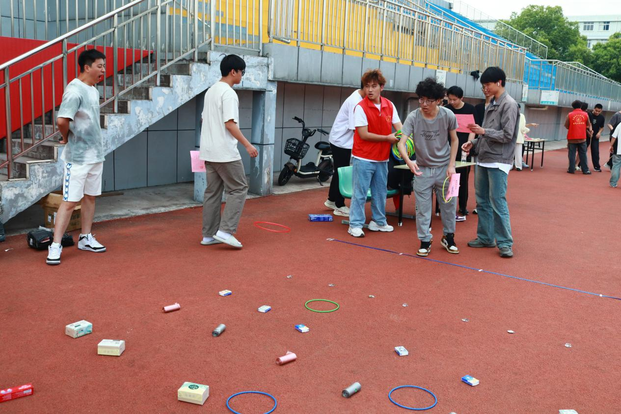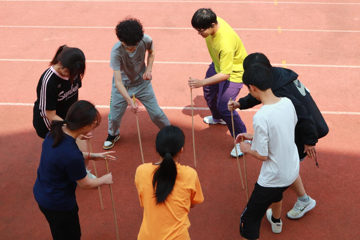 活动现场气氛热烈欢快。在“吹球过桥”项目中,同学们全神贯注地控制着乒乓球;“投壶”比赛时,选手们屏气凝神,力求精准;“不倒森林”环节,各团队配合默契,展现出良好的协作精神。场边观众不时为参赛选手加油助威,欢笑声此起彼伏。