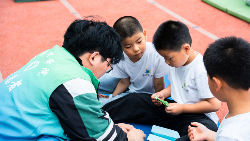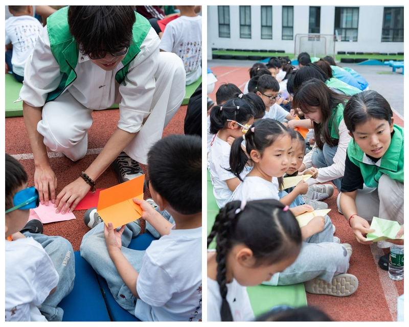 在志愿者的带领下,孩子们学折纸飞机,沉浸在动手探索的快乐中。大家手持精心制作的纸飞机,摆好姿势,用力一掷,童梦启航。