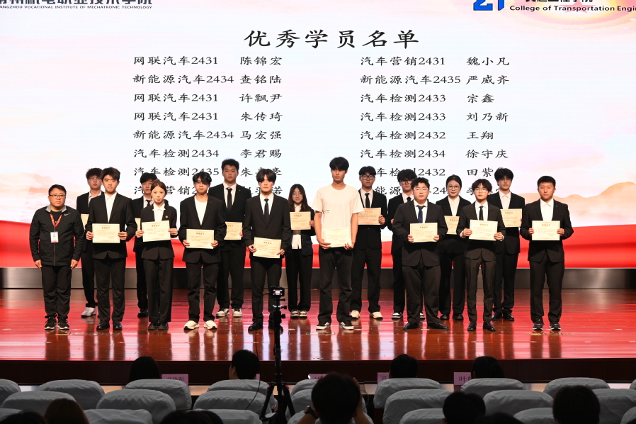 汽车检测2435班朱嘉豪作为优秀学员代表发言,他结合在训练营中的所学、所思、所悟分享了收获。周杰林、胡德权、渠贺对新学生干部体系制度进行了详细讲解说明。
