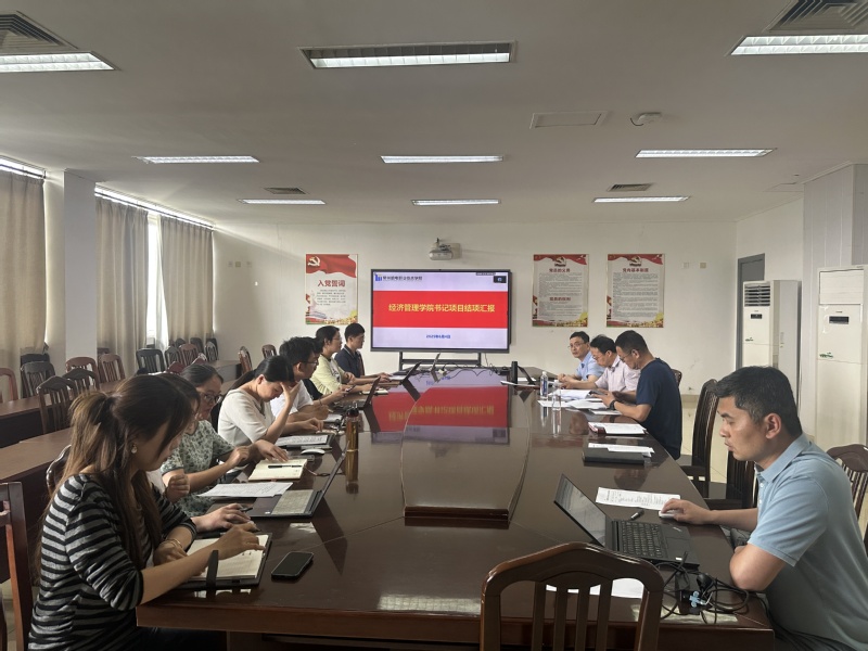 6月4日下午,经济管理学院在善成楼542室举行“书记项目”结项验收。学校组织部、统战部副部长陈如敏,马克思主义学院教授裴智民、经济管理学院党总支书记陈建新、党总支副书记甘迎春、各书记项目组组长参加验收汇报。
