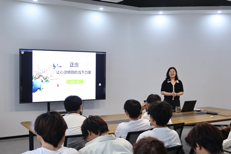 6月11日,机械工程学院心理辅导员刘斌在溧阳基地综合活动室举办正念主题讲座,以一颗葡萄干为“媒介”,带领学生沉浸式体验正念练习,探索专注当下的心灵调节之道。