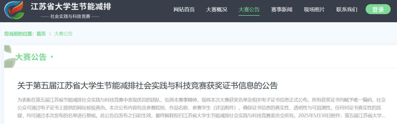 近日,第五届江苏省大学生节能减排社会实践与科技竞赛决赛在苏州常熟圆满结束。本届赛事以“节能减排,绿色能源;节能智汇,绿能先锋”为主题。模具技术学院提交的科技类作品《高效节水“零雾型”冷却塔装备研发》(作者:尤洪裕、周伟杰、杨浩、刘恒瑞、成宇馨、董然鑫、孙浩梁,指导老师:姚建、曹勇);社会实践类作品《节能减排新引擎——新能源汽车发展现状及挑战调研》(作者:程仪、朱玉珊、李浣程、殷陆尚源、陈宝鑫、李沛泽、陈喆,指导老师:姚建、曹勇)在主赛道与东南大学、河海大学等众多省内本科高校同台竞技,从1951件作品中,脱颖而出,均荣获大赛三等奖。两件作品的创新性获得了评委的一致认可。