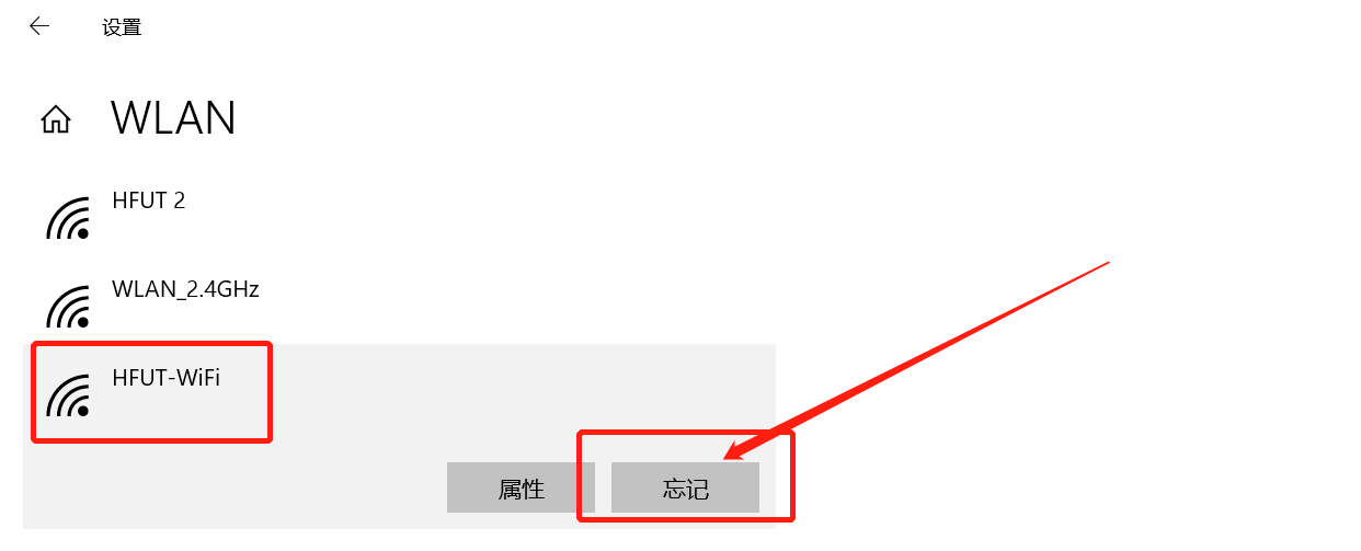 点击电脑右下角网络图标--网络和internet设置--WLAN--管理已知网络--找到HFUT-WiFi,选择忘记。
