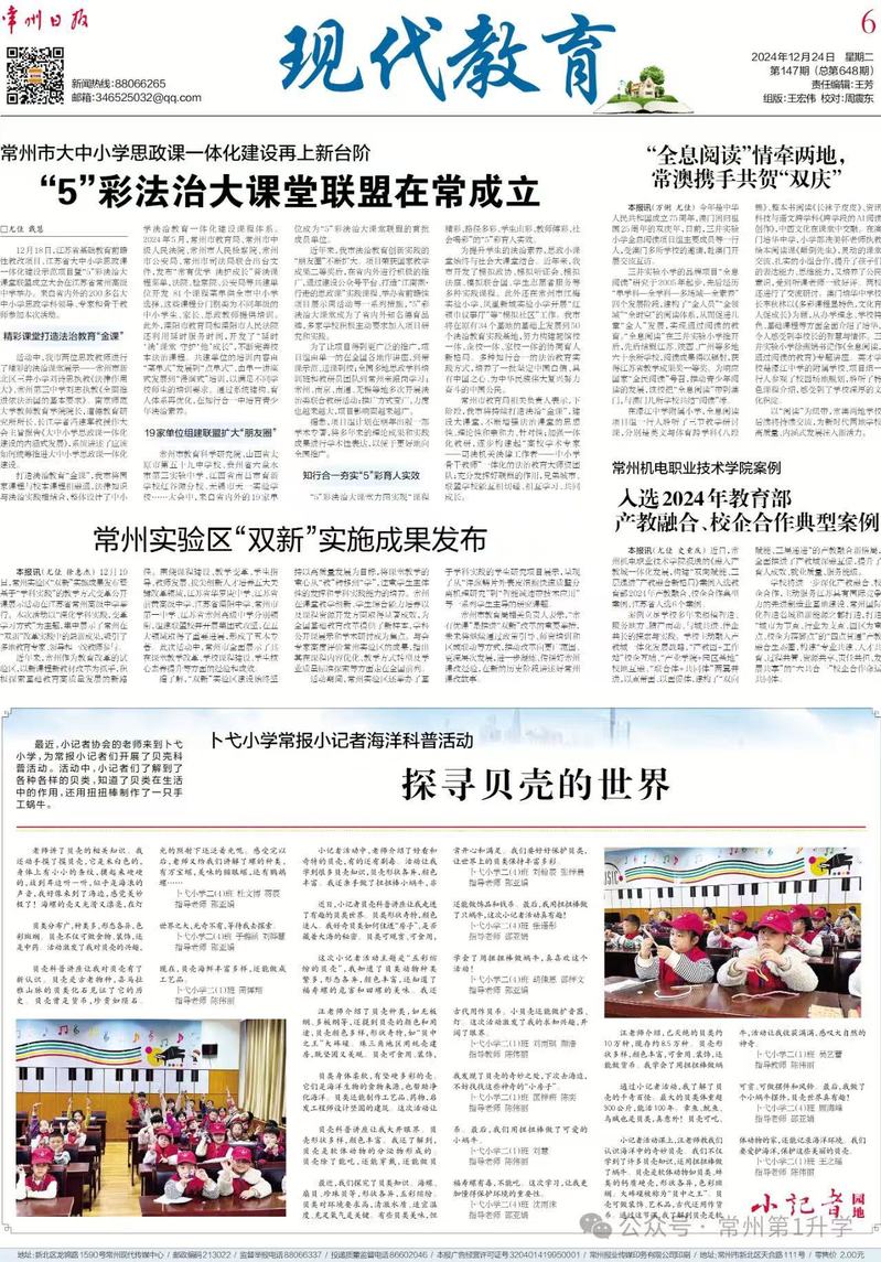 本报讯(尤佳 史重庆) 近日,常州机电职业技术学院报送的《融入产教城一体化发展,构建“双向赋能、三层递进”产教融合新格局》案例入选教育部2024年产教融合、校企合作典型案例,江苏省入选6个案例。