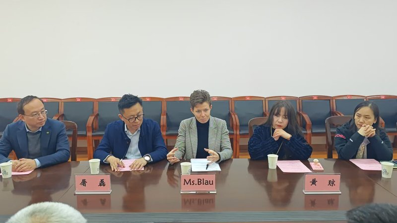 Ms.Blau表示非常高兴来到常州机电学院与大家交流座谈,她表示职业教育、校企合作对公司的业务发展是非常必要的。她简要介绍了德国职业教育发展情况及职业教育模式。
