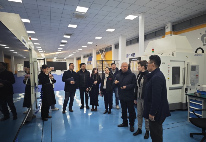 刘江介绍了机械工程学院人才培养、实训室建设、中德职业教育教学改革项目。他强调必须将理论知识与实践操作紧密结合,才能培养出符合企业实际需求的专业人才,详细介绍了中德职业教育教学改革项目,分享了在借鉴德国先进职业教育理念和模式过程中的经验与成果,展现出学院在职业教育改革创新方面的积极探索与实践。