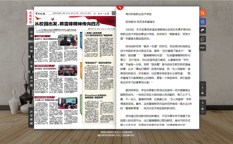 3月4日,天宁区青龙街道龙湖郦城社区党总支携手常州机电职业技术学院创意设计学院,共同举办“剪影锋采,纸传大爱”学雷锋主题实践活动。