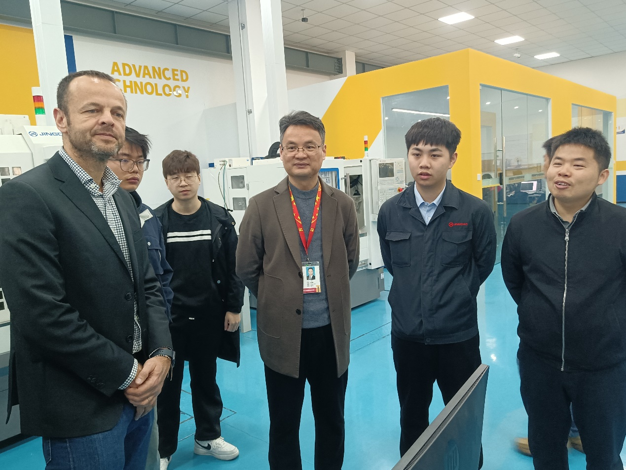 刘贤锋对拉奎尔先生到访表示热烈欢迎,就我校产教融合、科教融汇情况进行简要交流,并陪同拉奎尔一行前往精密制造产业学院进行首件试制现场认证。在随后的项目启动会上,机械工程学院副院长许爱华汇报了项目实施计划,与拉奎尔先生展开了深入交流讨论。
