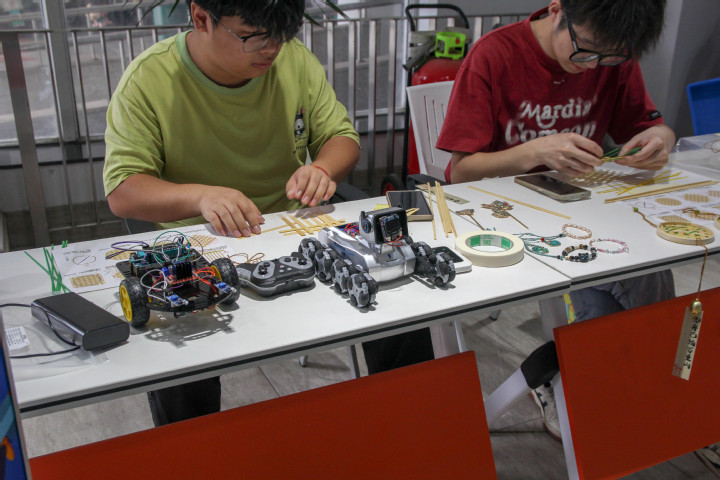 各学院把劳动实践与大学生创新创业、社会实践、学生实习实训及学科竞赛等有机结合起来,积极打造“劳动+”育人模式:机械工程学院学生用3D打印机把电脑中的构思变成了现实,电气工程学院学生手把手教大家竹编风铃制作技巧,模具技术学院教大家如何手工制作艾草肥皂,交通工程学院学生制作的烟雾报警器在烟雾浓度超标时会发出警报,信息工程学院学生利用废旧纸盒变废为宝制作了精美创意作品,经济管理学院学生现场演示了合香珠手串的制作流程,创意设计学院学对环保纸盘进行了艺术设计。摊位前的小伙伴一边自信地介绍劳动成果,一边耐心地展示制作过程,他们忙在其中也乐在其中。风铃、香包、簪花、3D作品、烟雾报警器等一件件精美作品赢得了大家一致好评。