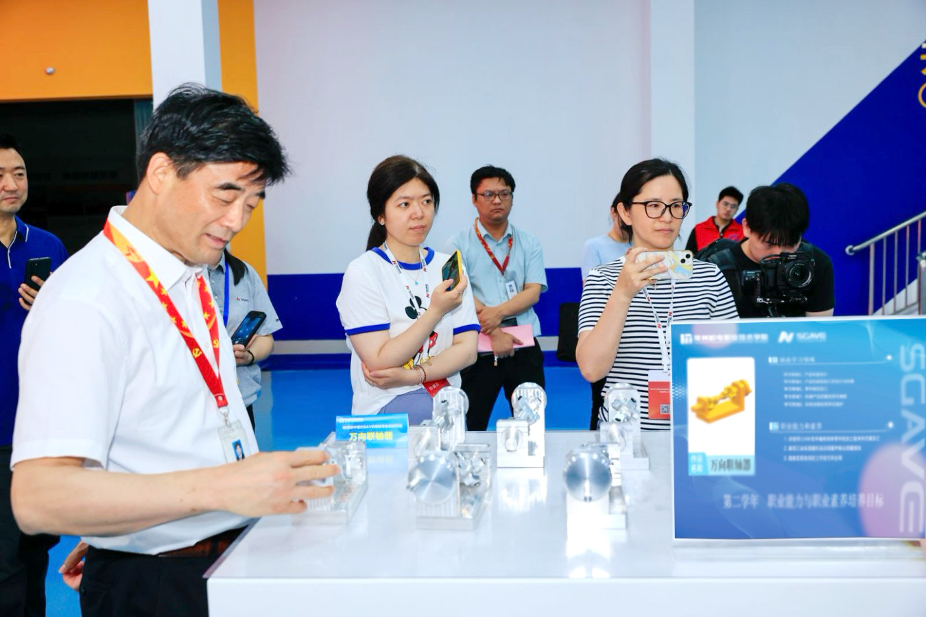 评审专家实地考察了我校中德先进职业教育产教融合中心、国家级虚拟仿真基地等实践教学场所,并参观了SGAVE项目教学成果展。专家们认真听取了学生成果汇报,对项目实施以来的教学成果、教学资料规范性及学生培养质量给予了高度评价。