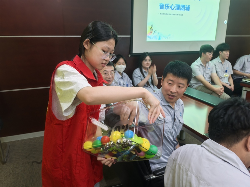针对调研发现的问题,团队举办家庭沟通讲座,提出“家庭系统压力模型”,教授“非暴力沟通四步法”,并设计“家庭契约”互动环节;开展音乐心理团辅,通过身体律动、节奏模仿、旋律共创等活动缓解压力,20余名员工反馈“体验治愈”。