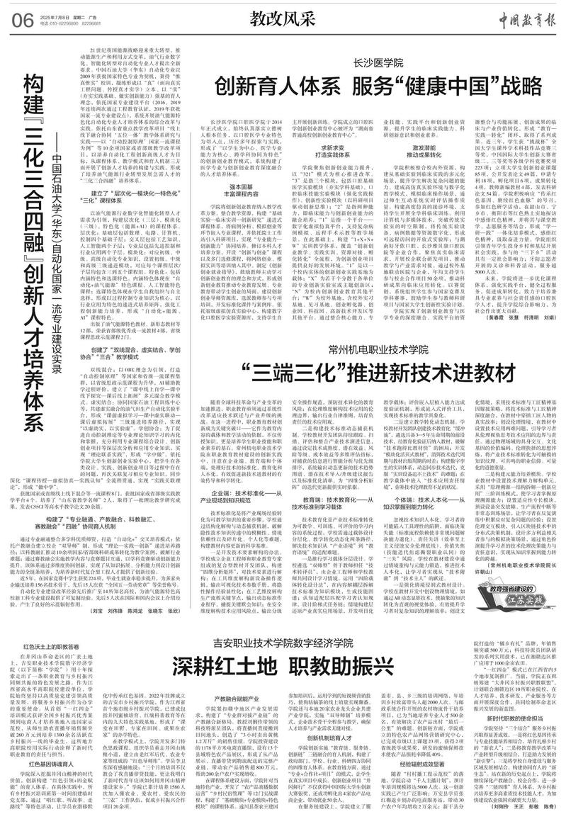随着全球科技革命与产业变革的加速推进,职业教育亟须通过系统性改革适应技术跃迁与产业升级的挑战。在这一进程中,职业教育教材创新成为关键突破口——它作为教育内容的载体和教学活动的依据,不仅传授知识,更是培养学生职业技能和职业素养的基石。常州机电职业技术学院在职业教育教材建设的创新实践中,注意在企业端、教育端和个体端,处理好技术的标准化、教育化和人本化,有效促进新技术进教材的有效传导和科学转化。