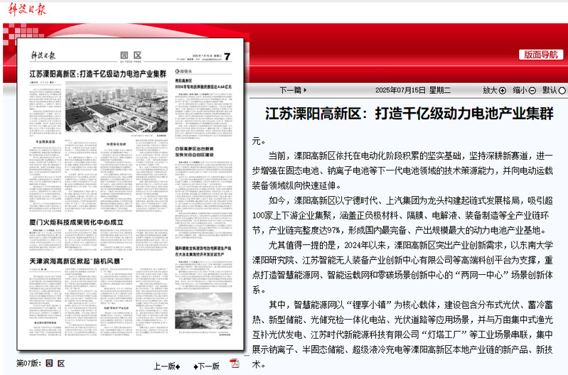 以动力电池产业为支点,引导创新资源集聚,共建高端创新平台,持续做大特色主导产业,是溧阳高新区推动产业集群发展的有效做法。