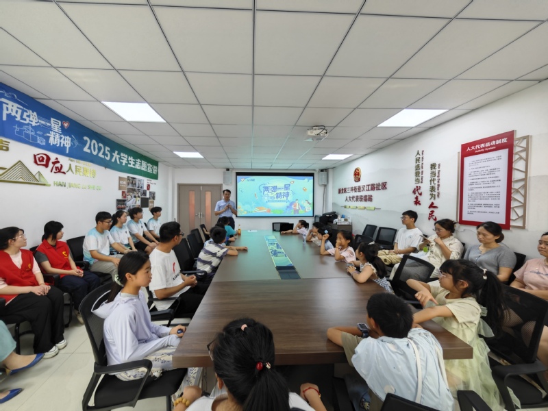 首场宣讲于7月15日在汉江路社区拉开帷幕。学院经济管理学院党总支副书记甘迎春以两弹一星中的科学家精神为主题,结合学院学科特色与育人实践,系统阐释热爱祖国、无私奉献、自力更生、艰苦奋斗、大力协同、勇于攀登精神的当代价值。学生代表丁振航通过多媒体演示,生动展现我国核能科技发展成就,激发青少年科创热情。活动创新设置知识竞答航天模型DIY红歌传唱三大环节,将红色基因传承与科学素养培育有机结合。