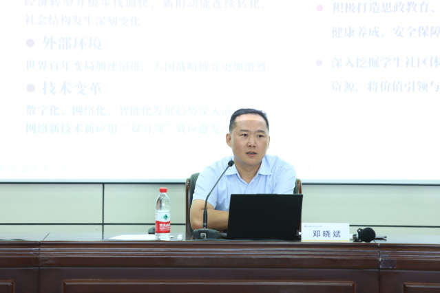 常州工程职业技术学院党委学生工作部部长邓晓斌作《“一站式”学生社区综合管理模式建设的思考与实践》报告,强调通过党建引领、部门协同、学生参与、数字赋能等措施,建设学生成长的思政高地和文化家园。