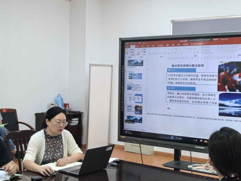 机械工程学院党总支副书记游杰汇报了暑期学生工作实践成果,副院长许爱华汇报了师资培训、课程建设进展,纪检委员周微传达廉洁教育精神,教师杨博文通报了科研条线项目推进情况。