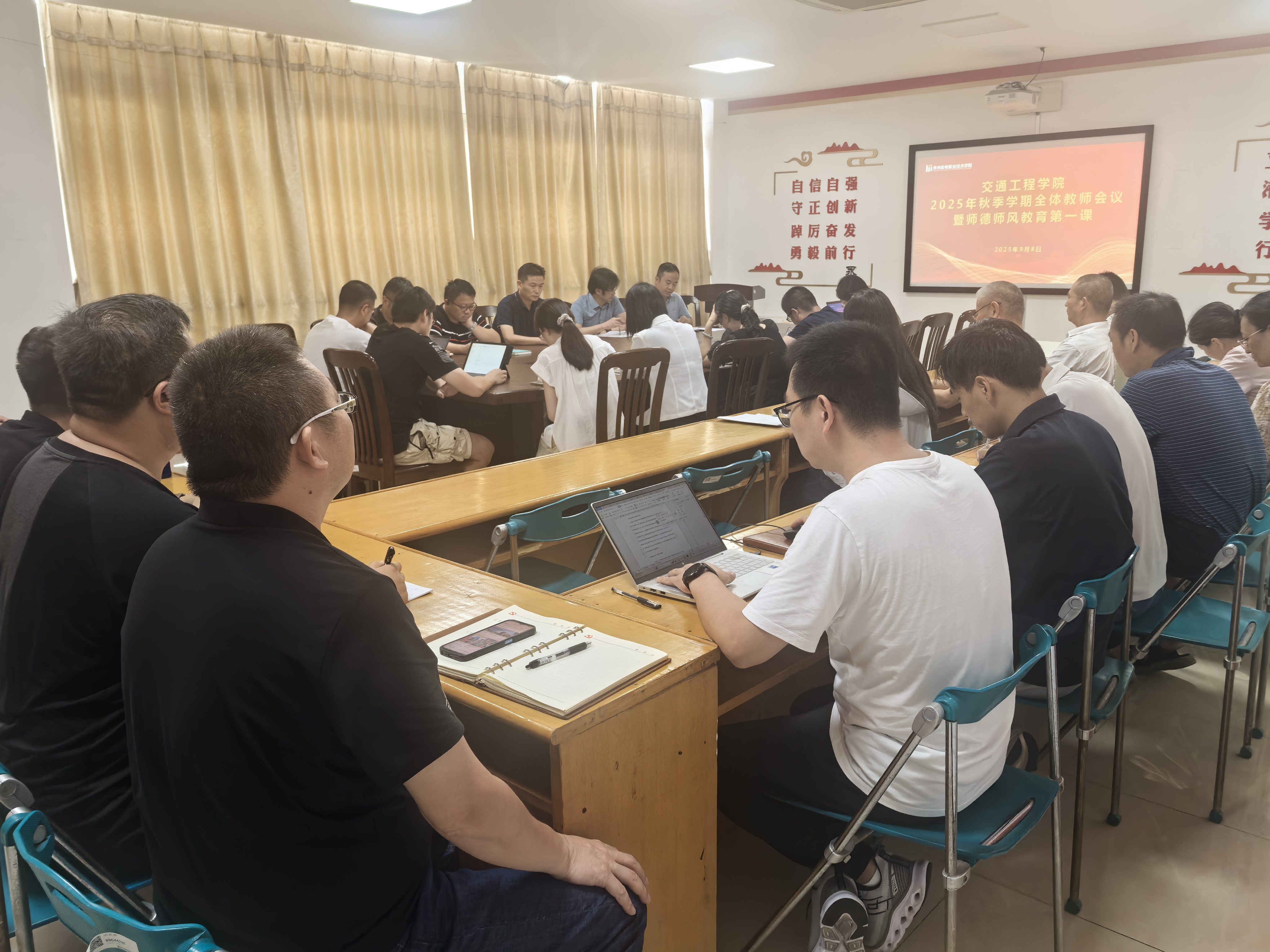 9月8日下午,交通工程学院在善为楼421室召开了2025年秋季学期全体教师会议暨师德师风教育第一课。会议由学院党总支书记吴海东主持,学院全体教职工列席了会议。