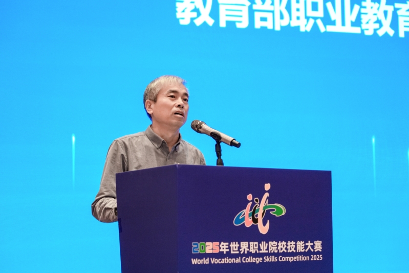 教育部职业教育发展中心教学教材处处长刘义国代表大赛组委会致辞,对全体参赛师生、裁判团队及支持单位表示感谢。他指出,世界职业院校技能大赛自2024年升级以来,立足全球视野,以服务产业、促进职业教育高质量发展为核心使命。本届大赛在赛道设计、赛制创新、国际拓展等方面实现多项突破。在赛道设置上,大赛新增人工智能等前沿领域;在赛制优化上,依据专业规模精准分配参赛名额,增设晋级环节,提升赛事普惠性;在国际化方面,大赛在东南亚、中亚、非洲、欧洲试点设立海外赛区,推动赛事全球化发展。此外,评分体系进一步细化,涵盖技能水平、职业素养、创新创意等综合能力,全面考察选手的综合素质,期待通过大赛平台,进一步深化产教融合,为全球产业发展输送更多高素质技术技能人才。