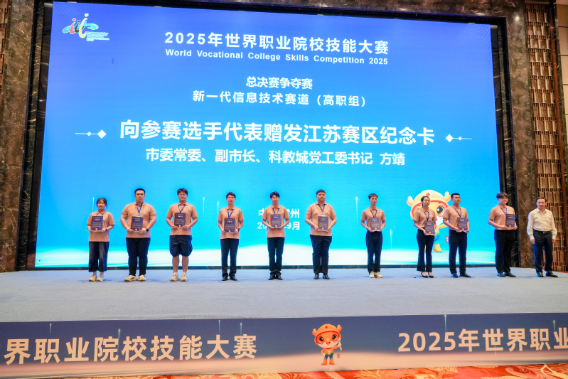 9月8日上午,2025年世界职业院校技能大赛新一代信息技术赛道高职组总决赛争夺赛在常州开幕。大赛由教育部牵头、联合国家部委及行业组织主办,江苏省教育厅承办,常州市人民政府、科教城五所高职院校协办。其中,新一代信息技术赛道总决赛争夺赛(高职组1组)由我校承办。
