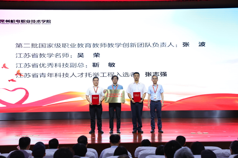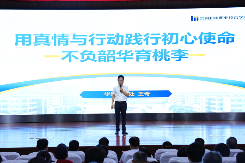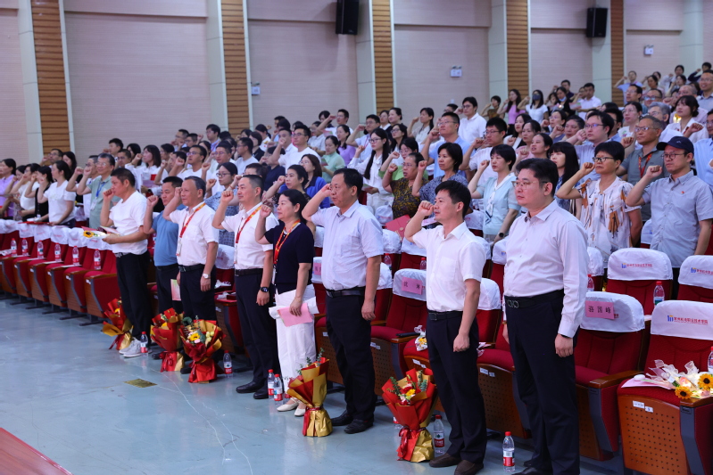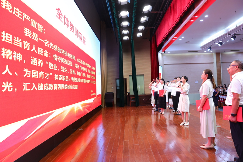 常州市师德模范、马克思主义学院党总支副书记宋田田带领全体教师宣誓,要努力成长为“四有好老师”,愿以教育家精神为指引,以己之微光,汇聚起建成教育强国的磅礴力量。