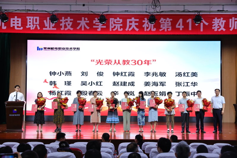 9月10日下午,我校在图书馆红厅举行第41个教师节庆祝活动。校党委班子、全体副科级及以上干部、师生代表、受表彰人员、江苏峰度控股有限公司董事长骆国峰参加活动。
