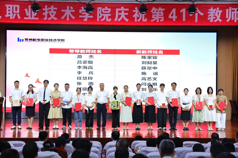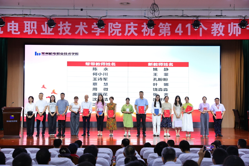 机械工程学院师生通过诗朗诵讲述师者匠心,学生代表为老师们献上亲手制作的手工花。17对新老教师结对,以师徒之名,开启一段薪火相传、青蓝共美的教育旅程,辅导员、思政教师、专业教师分别开展教育宣言接力。
