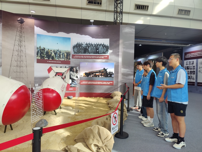 在“两弹一星”主题展区,师生们驻足于1:1还原的原子弹试验装置模型前,聆听讲解员讲述草原大会战期间科研人员在极端条件下攻克铀浓缩技术的感人故事。展区内设置的两弹元勋数字档案馆,生动呈现钱学森、邓稼先等23位功勋科学家的手稿与工作影像。物流管理专业学生结合所学课程,现场解析原子弹冷却系统工作原理,实现专业知识与军工精神的深度融合。