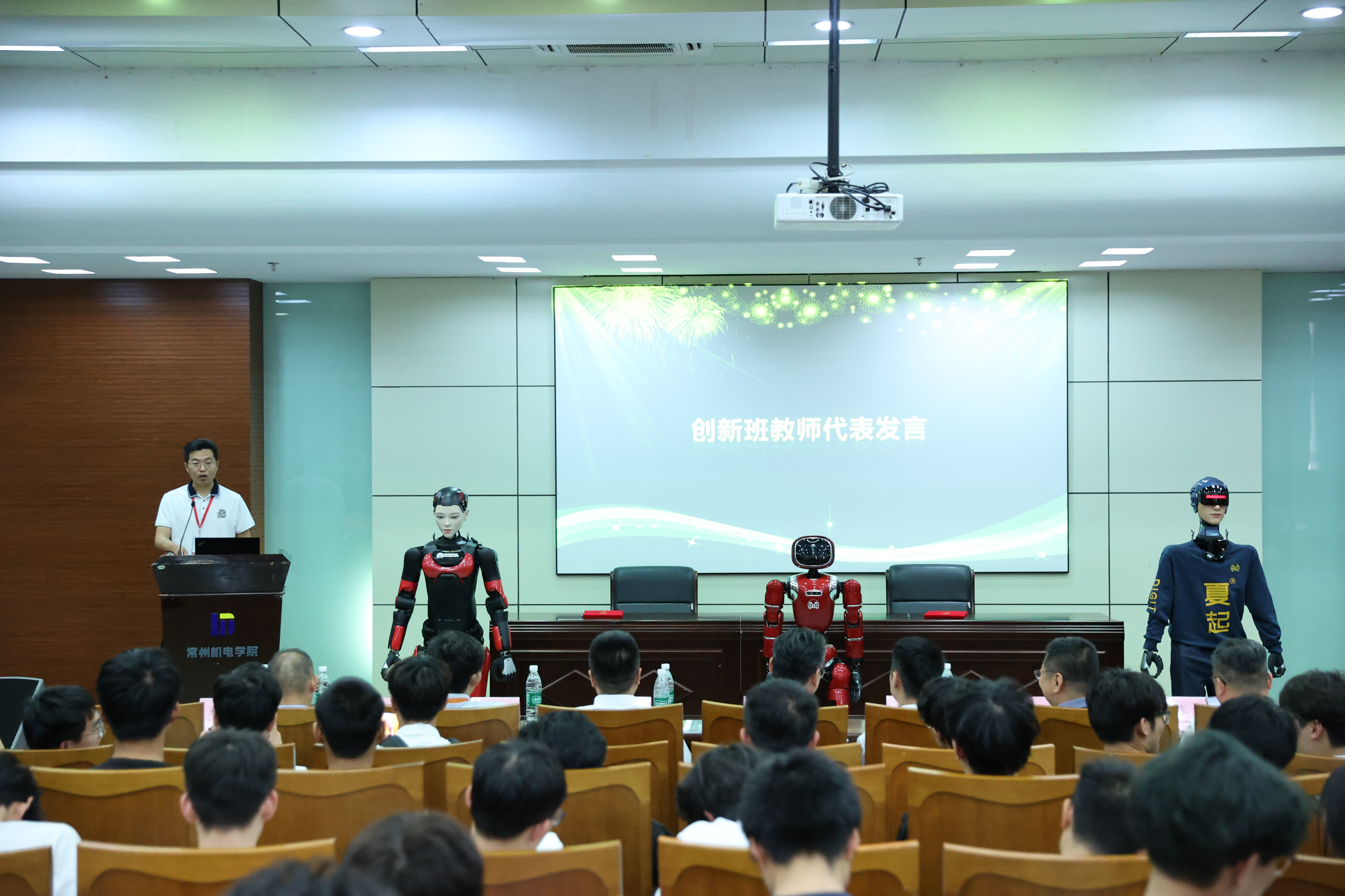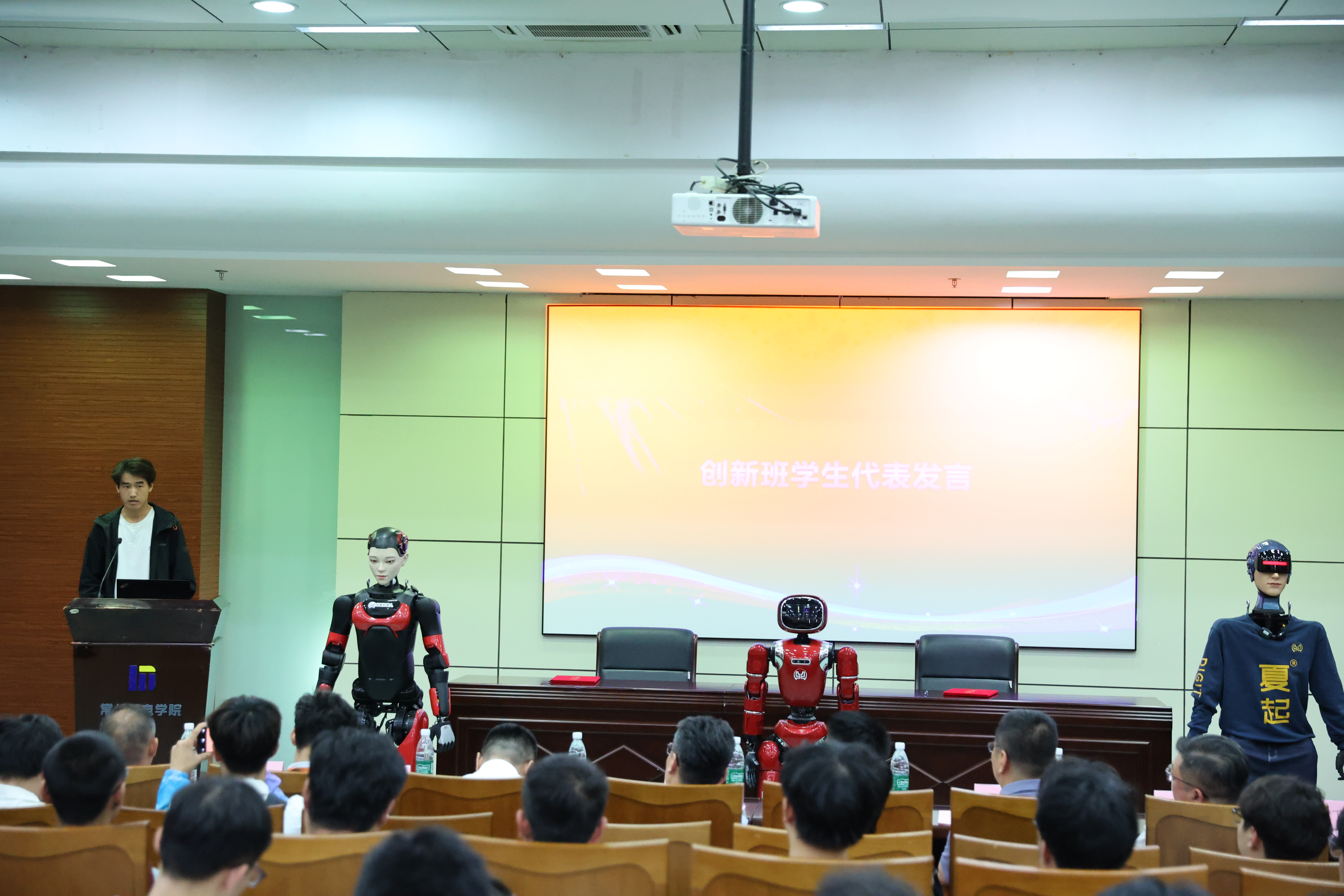活动的最后环节,华夏机器人总经理戴鹏为创新班学生带来了题为“具身智能机器人在职业教育中的应用与方案” 的专题讲座。仪式在生动的机器人与学生互动环节中圆满落幕。