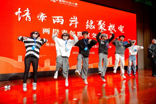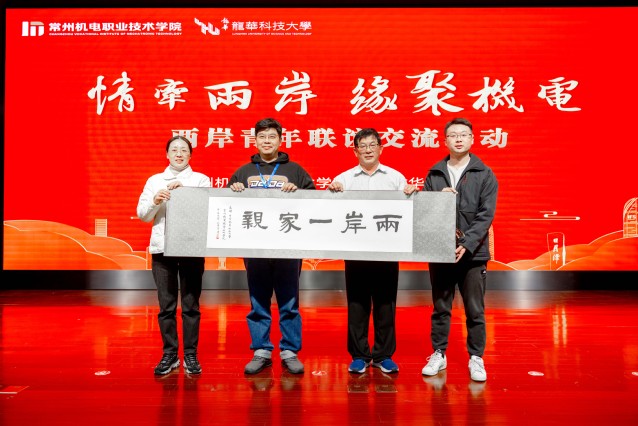 在学校图文楼红厅,“情牵两岸 缘聚机电”两岸青年联谊活动隆重举行。两岸师生学子齐聚一堂,以歌声、舞蹈展示了青春热情与深厚友谊,共享了一场文化交融的盛宴。最后的赠送仪式上,学校将邢粮梳篦大师工作室徐周萍老师撰写的“两岸一家亲”书法作品赠予龙华科技大学。